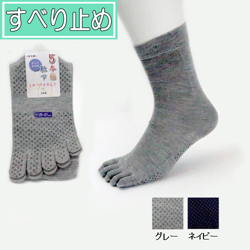 足口ゆったりタイプで、滑り止め付の5本指靴下。