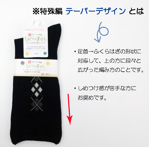 柄しめつけません毛混ソックス <紳士> テーパーデザイン 毛混 秋冬用 日本製