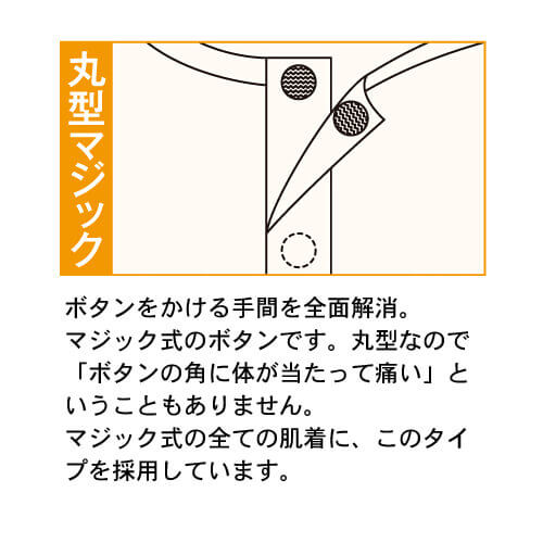 すずしいクレープ生地を使用した前開きの丸型マジック付きワンタッチ肌着