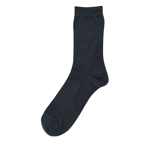 保温性と吸放湿性のバランスに優れた、はき心地の良いシルク高混率素材を使用しています。かかとを中心としたテーピング効果で歩行をサポート。適度なしめつけ感で快適なはき心地です。