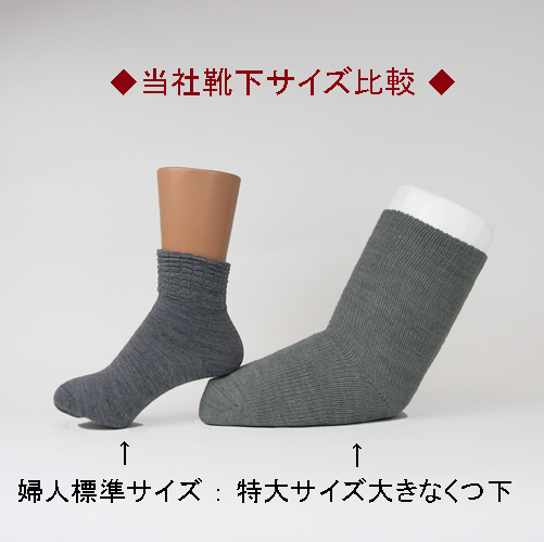 現行の【 超ゆったり大きな靴下 <婦人>むくみ用 特大サイズ 毛混 秋冬用 日本製】